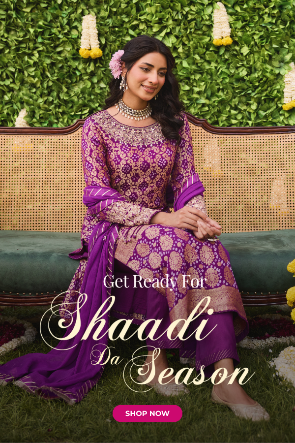 Enhance your wardrobe with our meticulously crafted designer ethnic wear collections, including festive sarees, elegant suits, and statement lehengas.