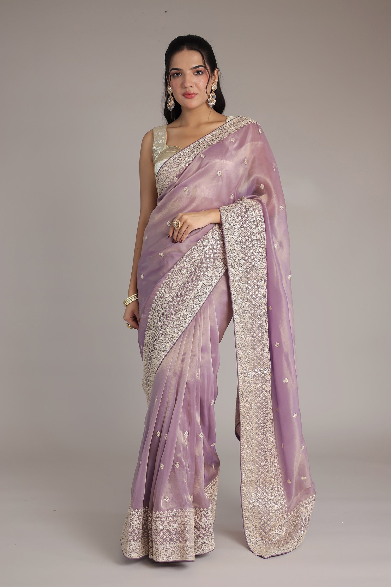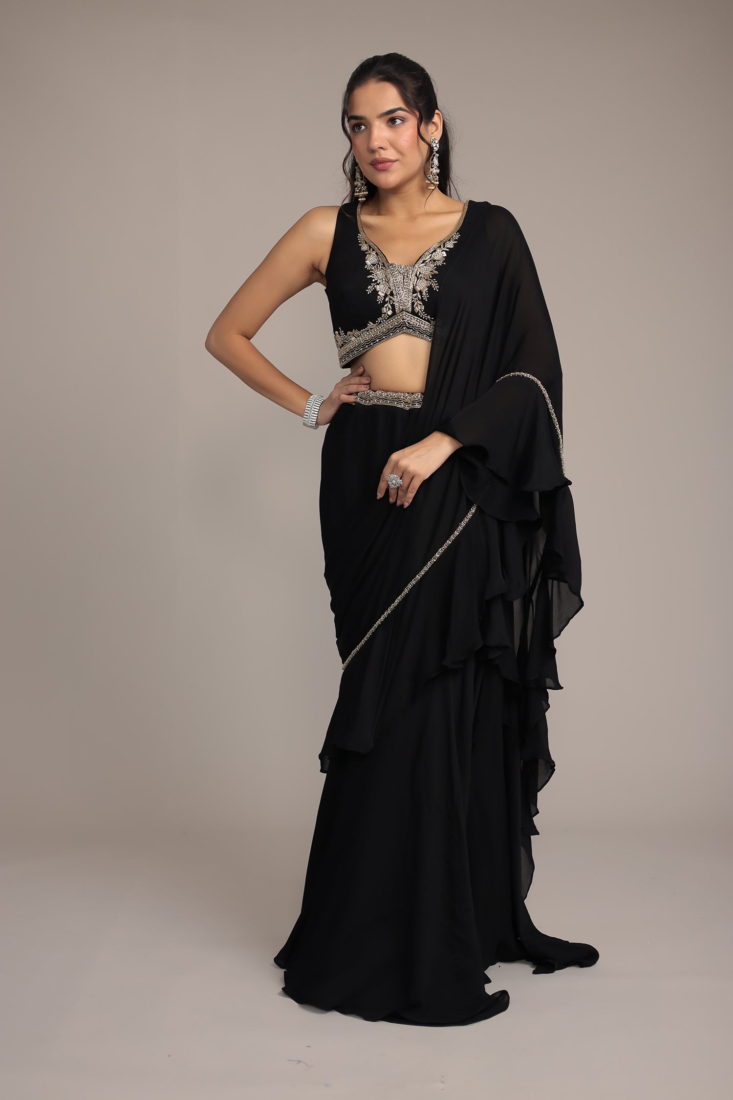 Footwear Matters: Pair your saree with high heels to enhance posture and elevate your overall look.