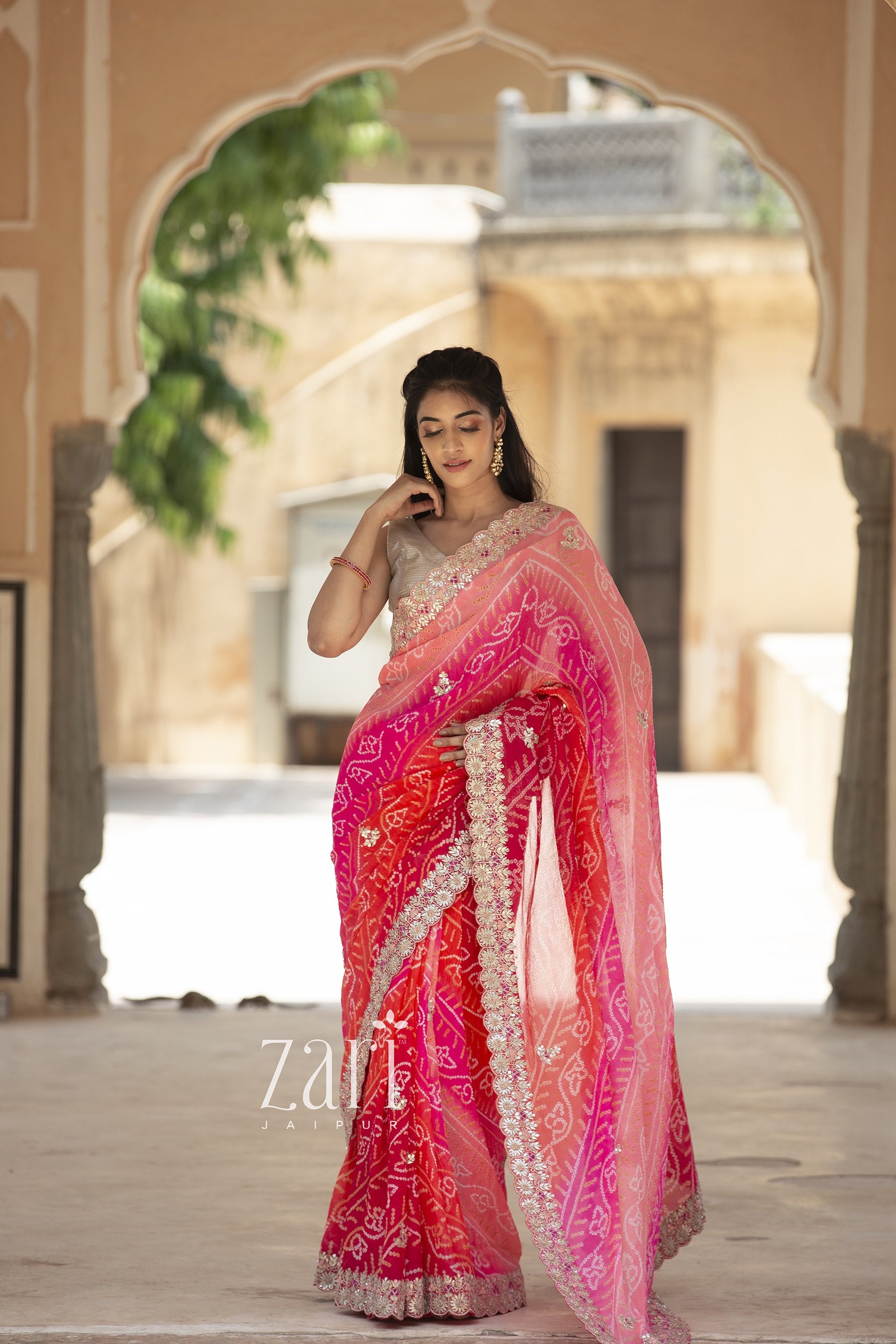 Explore our online saree shopping experience or visit the Zari Jaipur store to browse exclusive collections, including lehenga sets, designer shararas, evening gowns, and more from the finest in Indian ethnic wear for women.