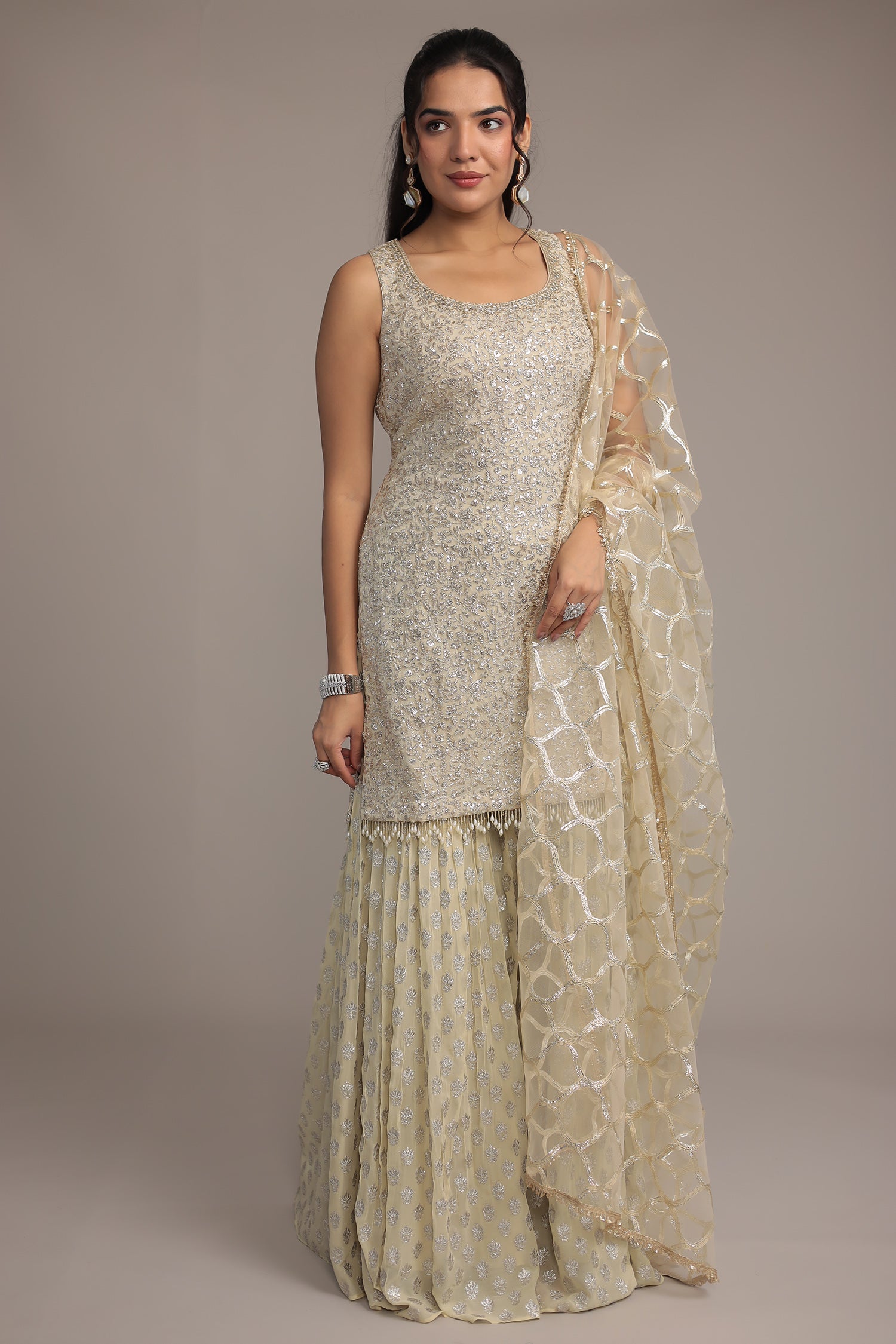 These flowy bottoms paired with short or mid-length kurtas create effortless festive elegance. Modern designer Sharara suits are crafted in lightweight fabrics, making them ideal for:
