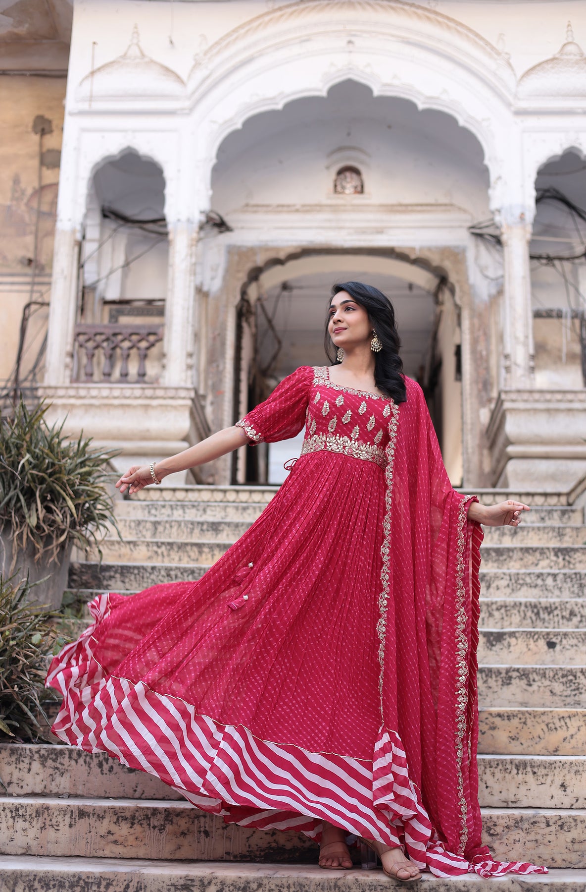 Leheriya Anarkali Georgette Suit Embroidered with Gota Patti work