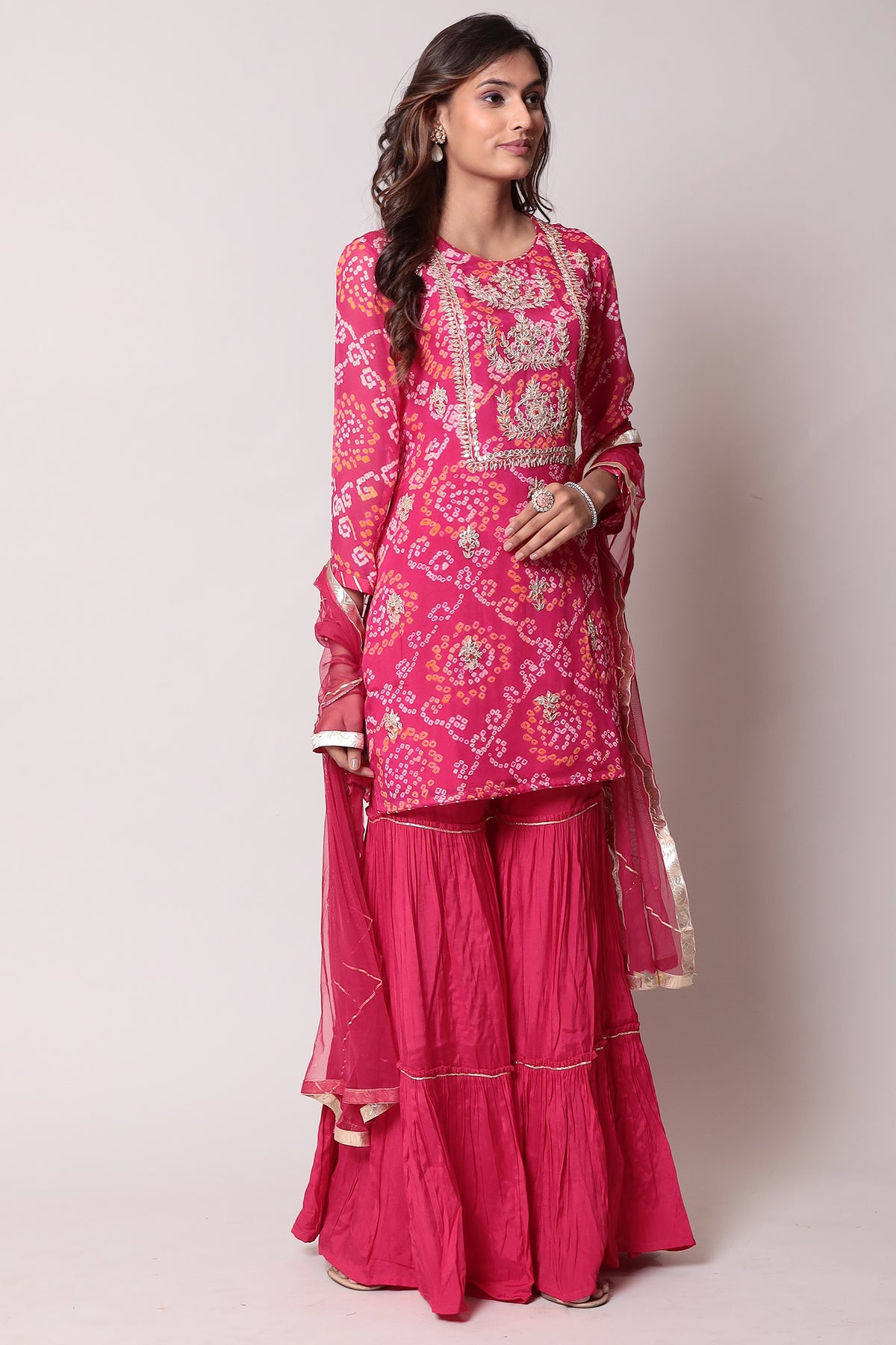 Bandhej Georgette Suit with Gota Patti work.