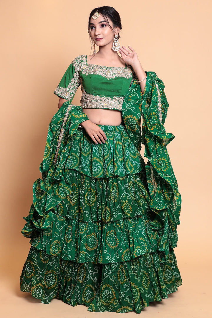 Bandhej Georgette Lehenga with Gota Patti work.