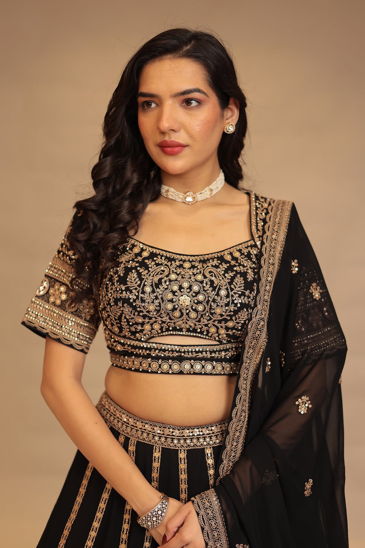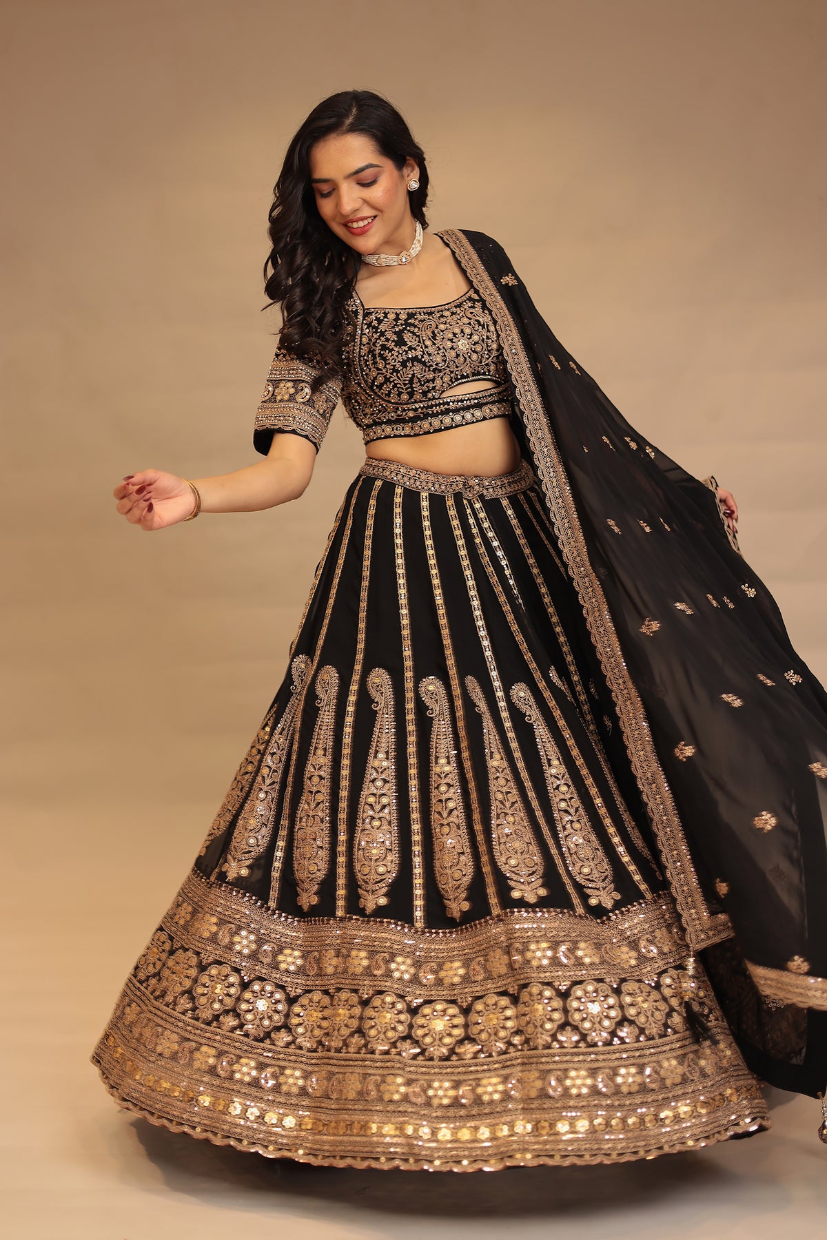 Georgette Lehenga with Dori, Sequins, Thread work.