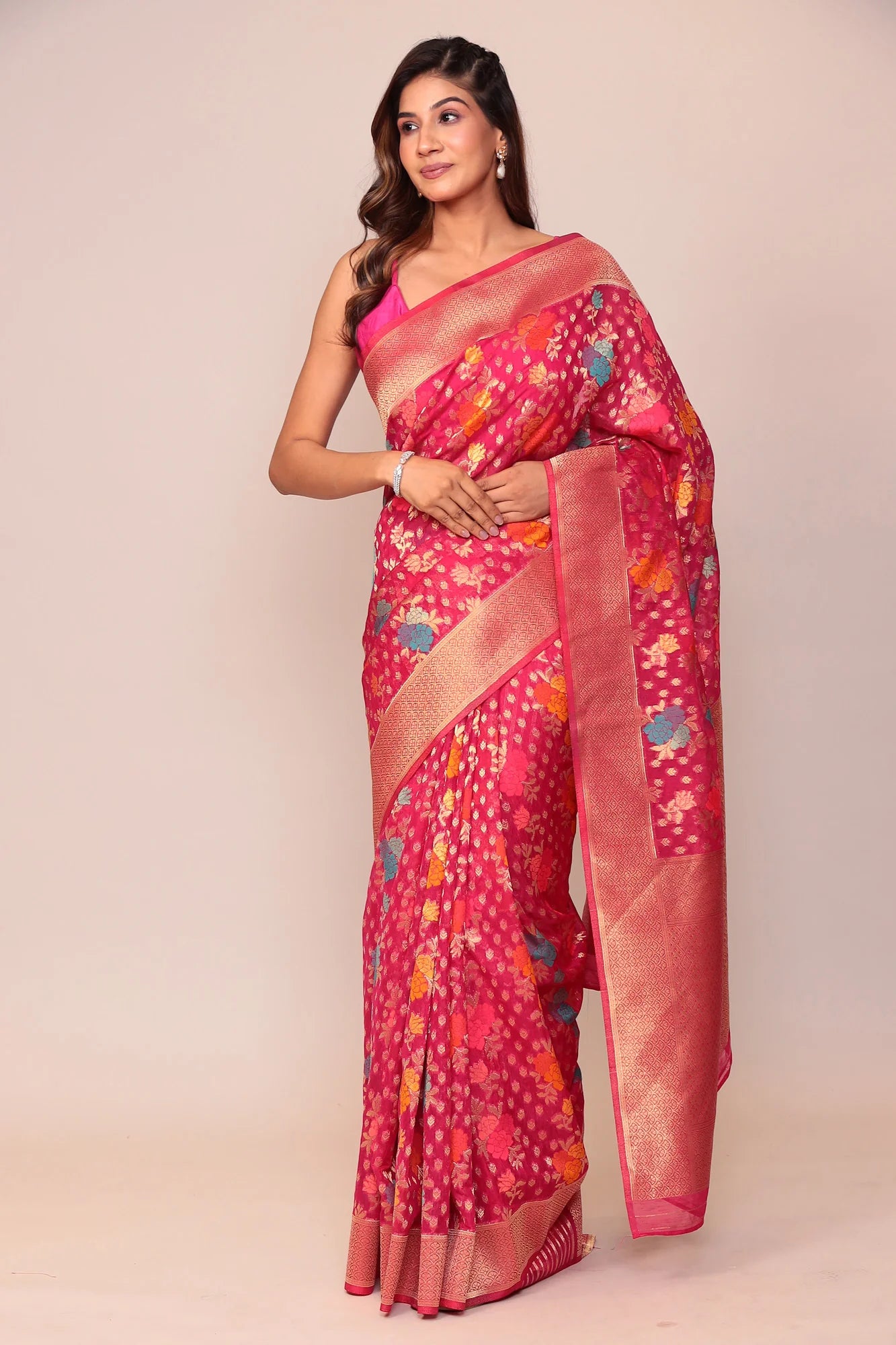 Crisp, sheer, and luxurious — organza sarees add sophistication and are perfect for elegant daytime functions.