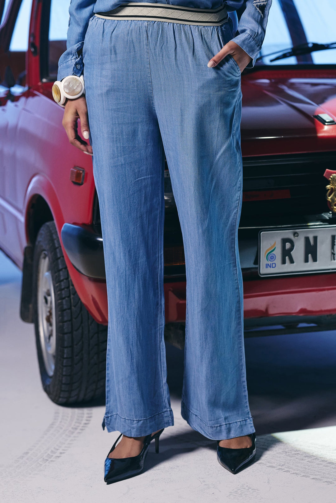 *Material is made out of Denim. *Co ords set detailed with embroidery at the bottom of the shirt and sleeves