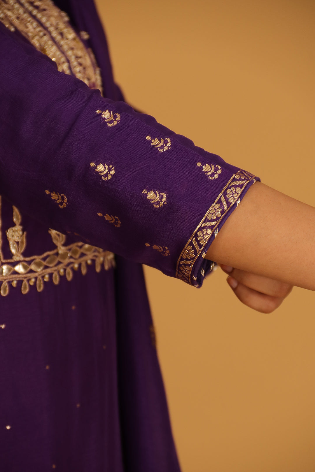Handloom Chanderi Suit Embroidered with Gota Patti work.