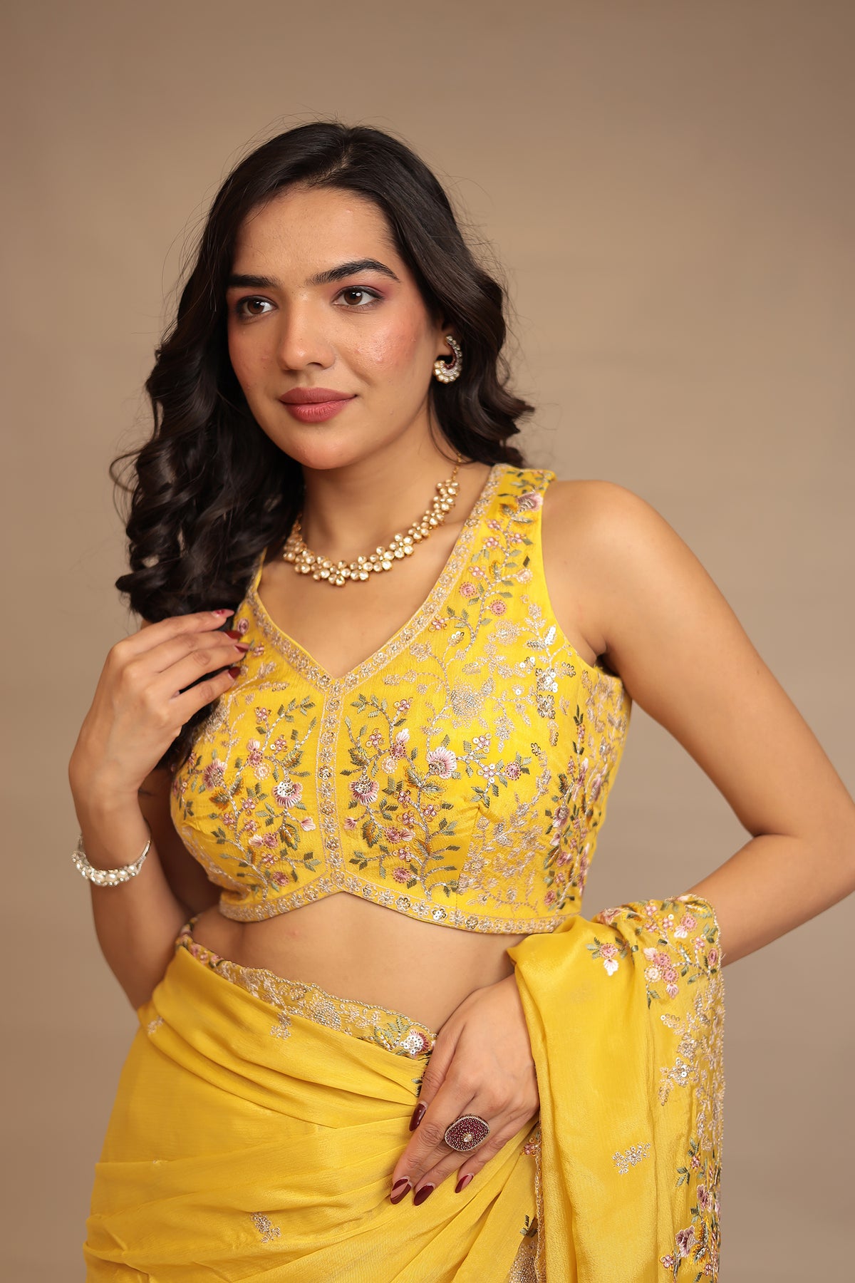 Please Note : The blouse worn by model is included with the saree. This saree comes with two blouse pieces-one stitched and one unstitched.