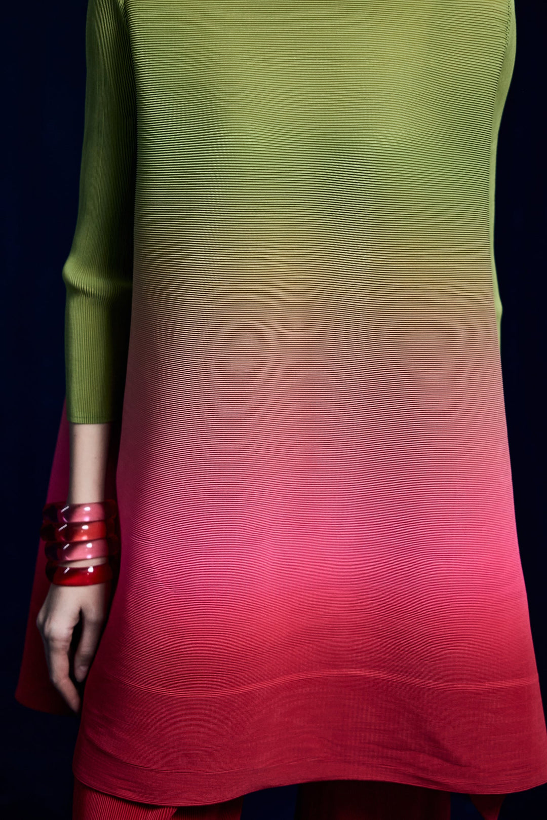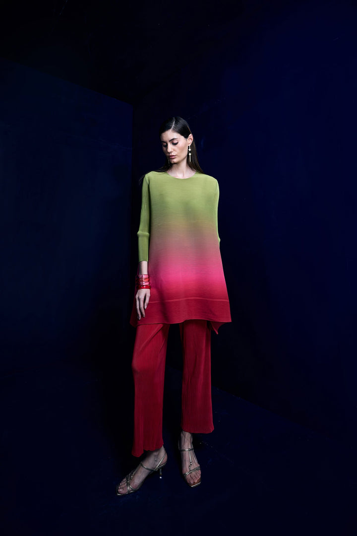 *Co ord set pleats with Ombre dyed light green to crimson color.