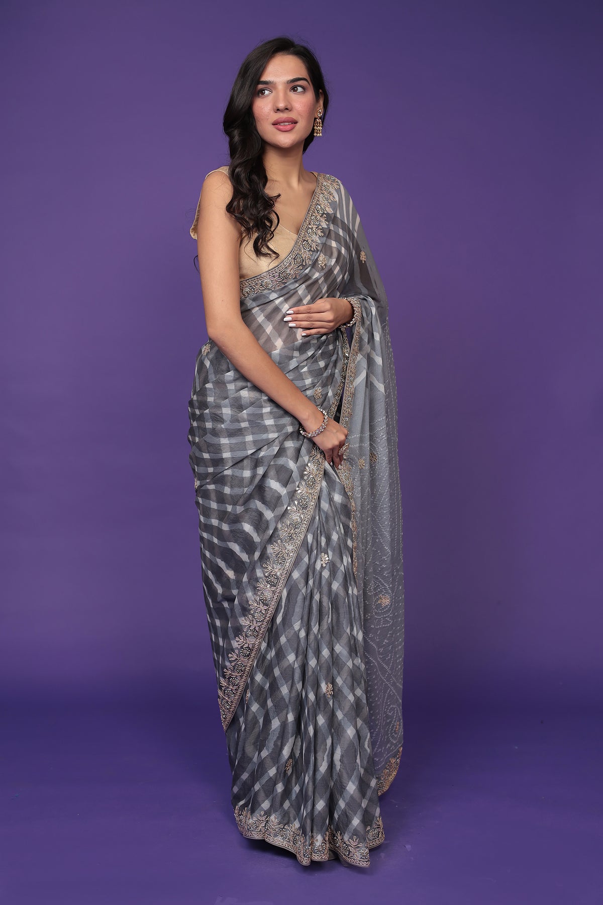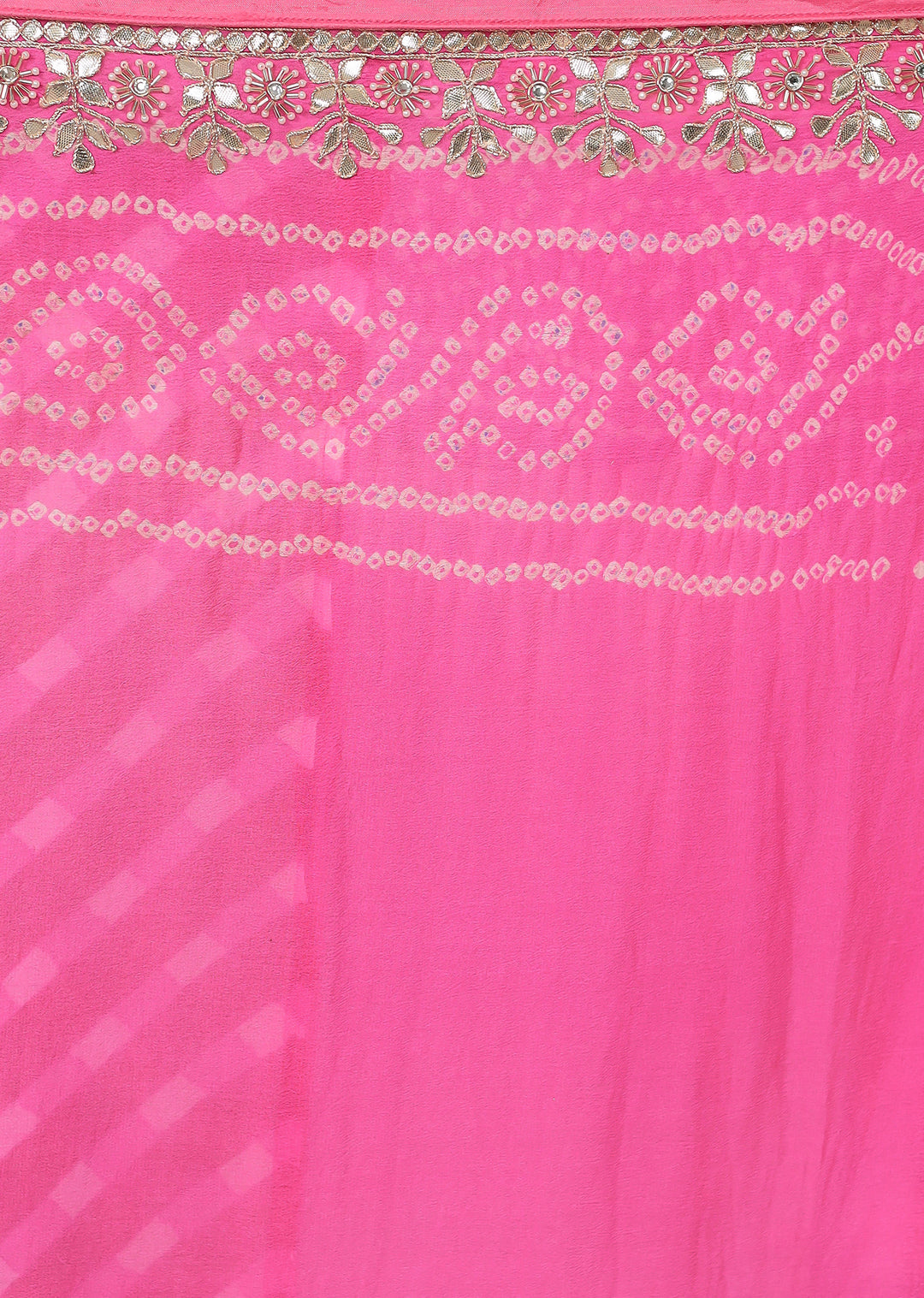 Leheriya Bandhej Georgette Saree Embellished with Gota Patti work