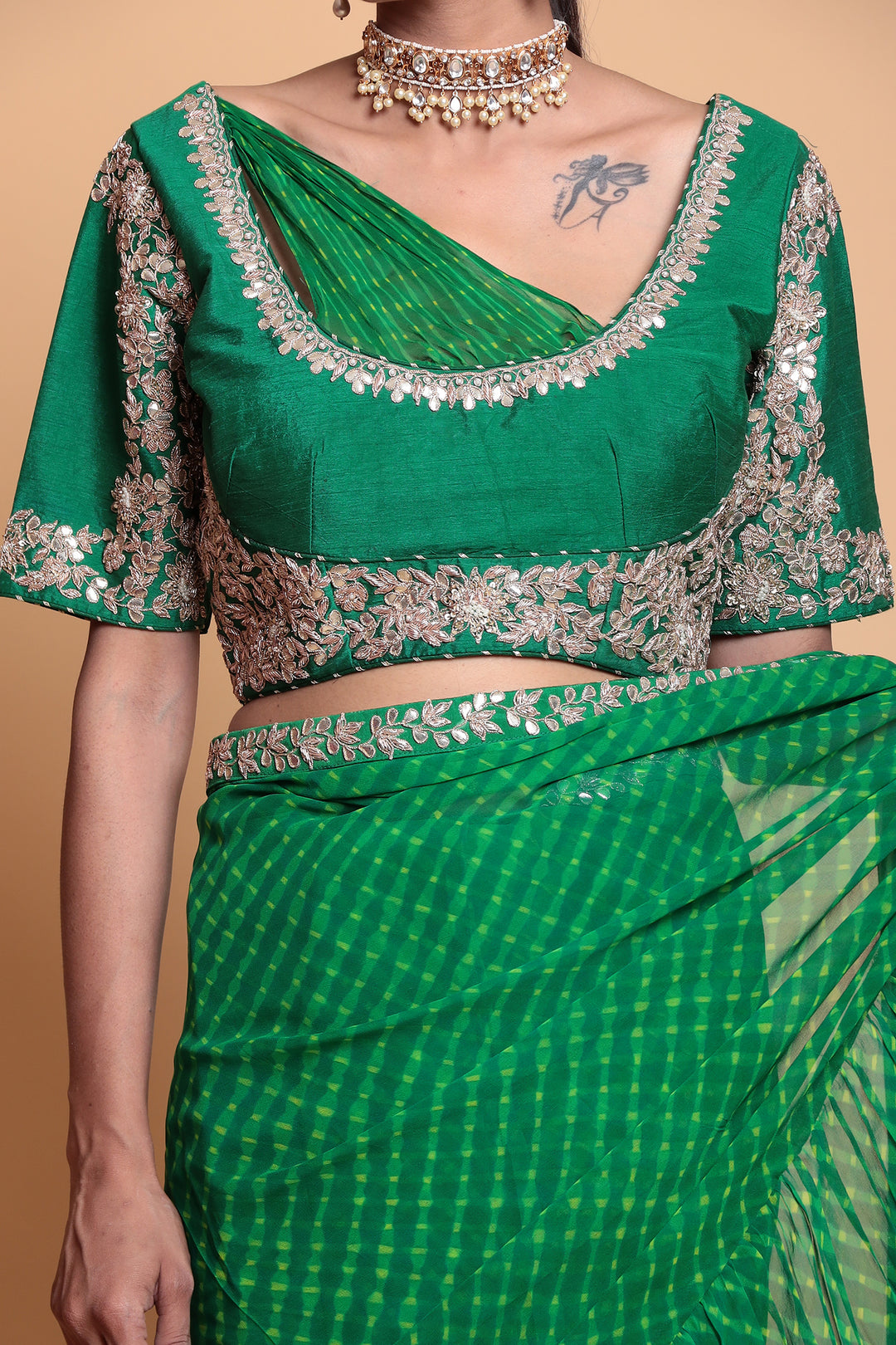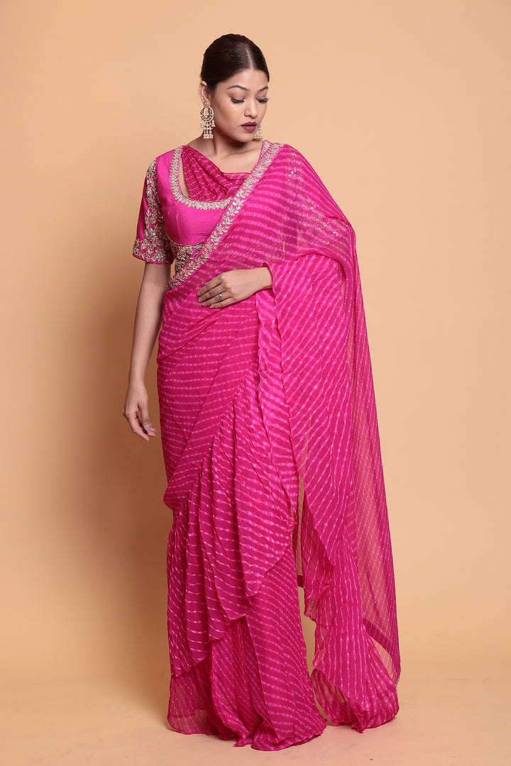 Mothra Georgette Ruffle Pre-Stitched Saree with Gota Work.