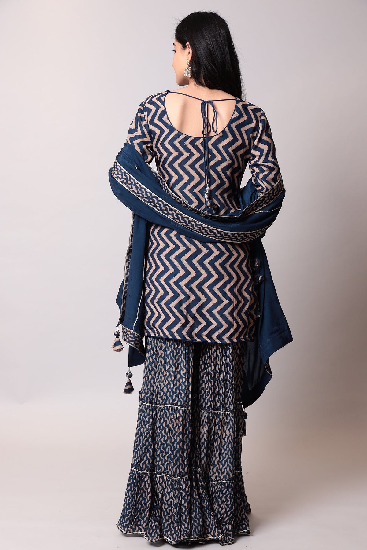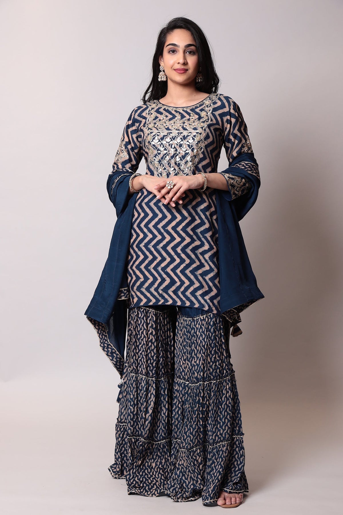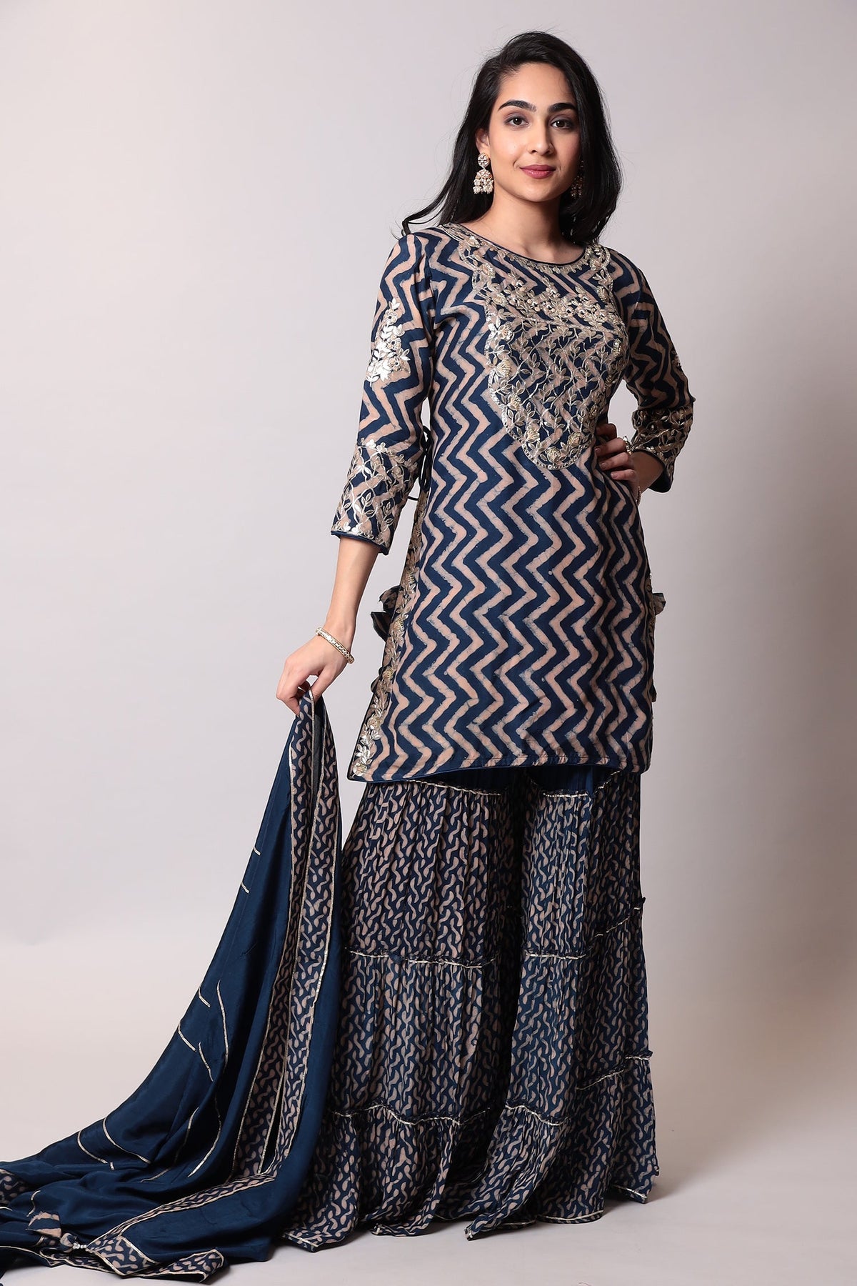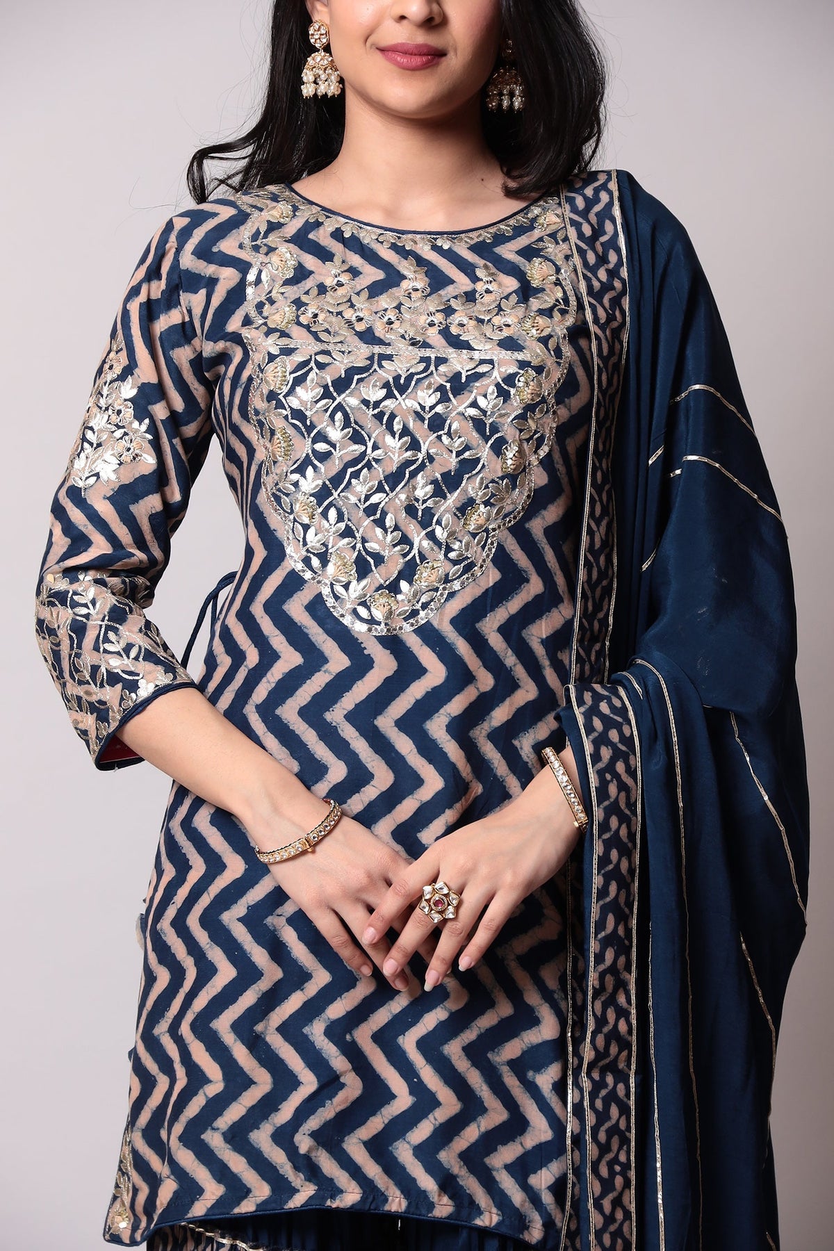 Printed Cotton Sharara silk Suit with Gota Patti work.